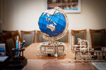 Learn the secrets of the world, while hiding a few of your own, with this impressive model globe! Outstanding in its design, This Wooden puzzle comes ready to assemble (no glue required), and is made from safe, plywood. The base of this rotating globe includes a hidden compartment that is unlocked with a secret lever, making it the perfect hiding spot for small treasures. The certain gears rotating opens access to the mechanical element inside the structure, which, when pressed, make it possible to push the secret model compartment